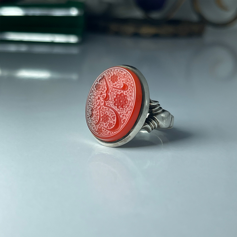 انگشتر مردانه عقیق سرخ با ذکر مبارک “یا اباعبدالله الحسین(ع)”، یک اثر هنری و معنوی برای مردانیه که به زیورآلات اصیل و مذهبی علاقه‌مندند. این انگشتر با رکاب دست‌ساز و نقره‌ی عیار ۹۲۵، ترکیبی از هنر، اصالت و معنویته. سنگ عقیق سرخ با رنگ پرانرژی و جذابش، همراه با حکاکی ظریف ذکر “یا اباعبدالله الحسین(ع)” به خط استاد عابد، این انگشتر رو به یک نماد ارادت به امام حسین(ع) تبدیل کرده.