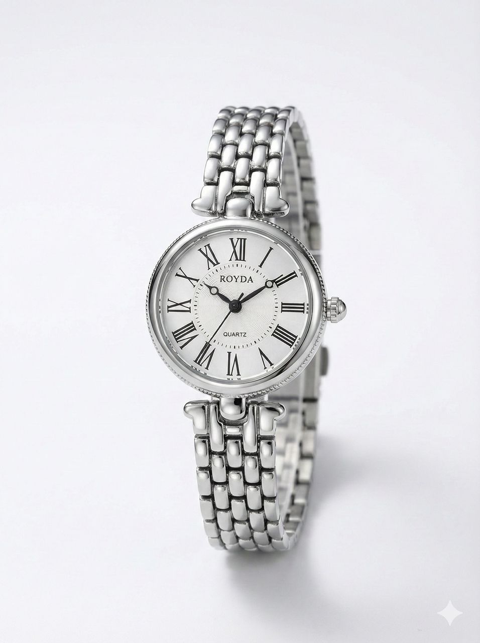 ساعت مچی زنانه ROYDA مدل تیفانی، بند استیل، صفحه گرد کلاسیک