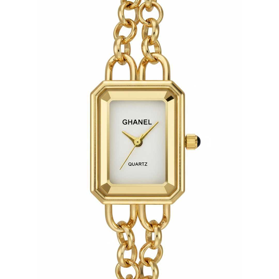 ساعت زنانه CHANEL طلایی، بند استیل زنجیری ظریف و قیمت مناسب