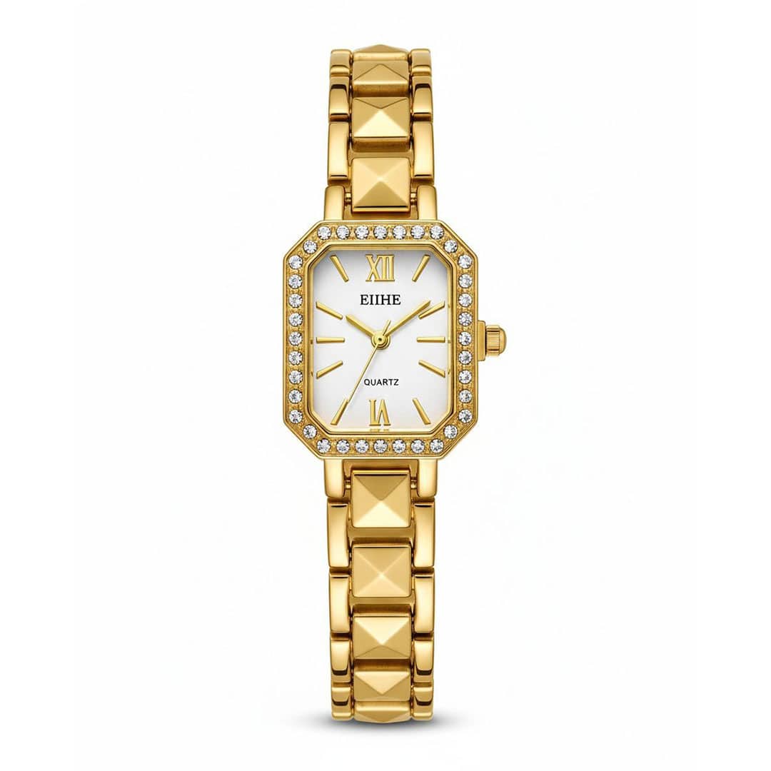 ساعت زنانه EHHE طلایی نگیندار، ظریف دستبندی صفحه سفید