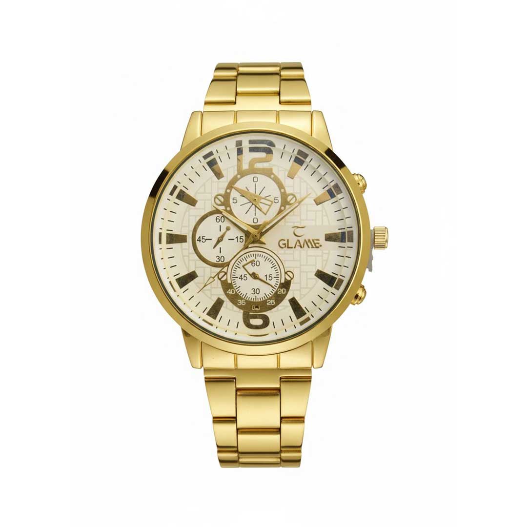 ساعت مچی مردانه GLAME طلایی سه موتوره | بند فلزی، قیمت اقتصادی