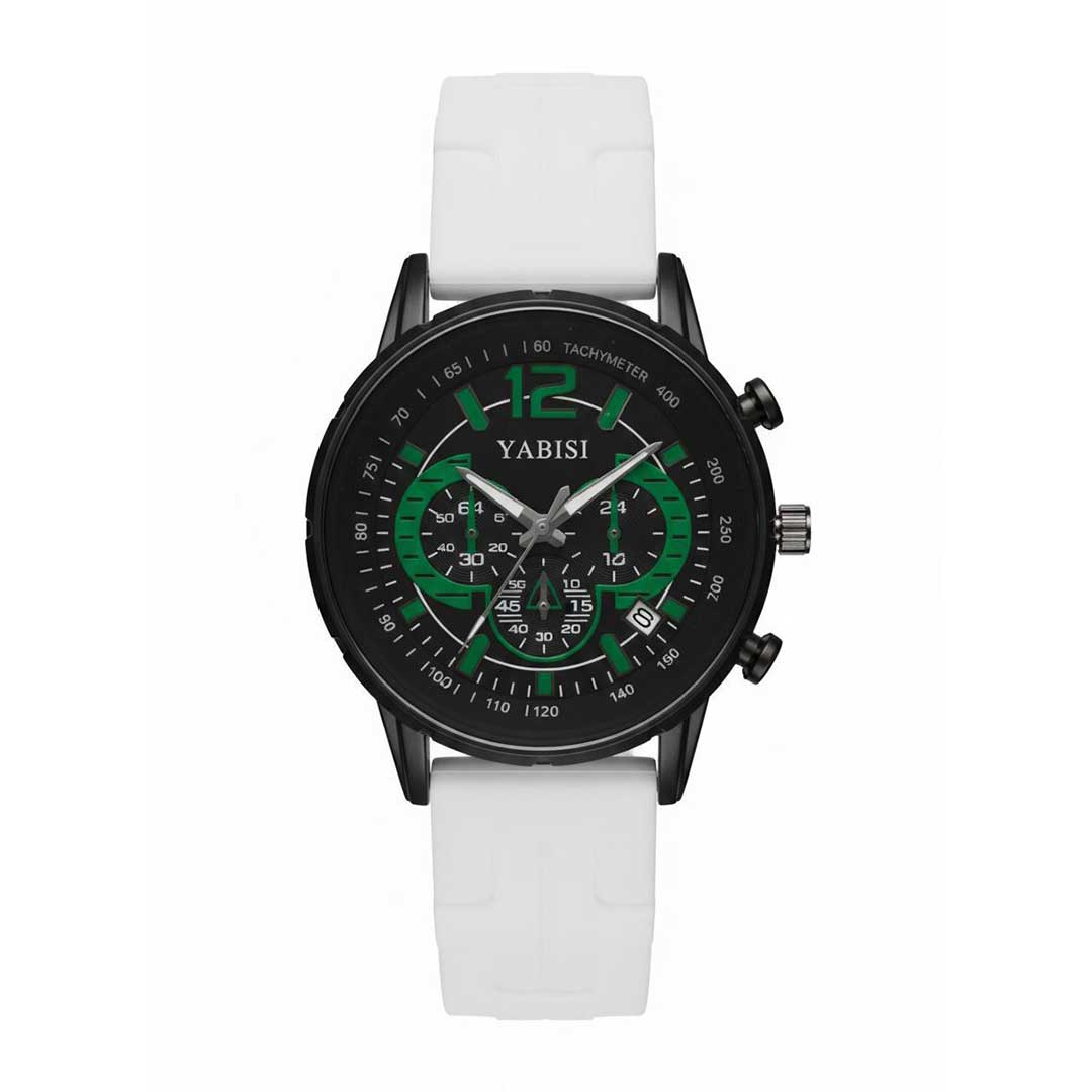 ساعت مچی مردانه YABISI صفحه مشکی سبز، بند PU طرح سه موتوره